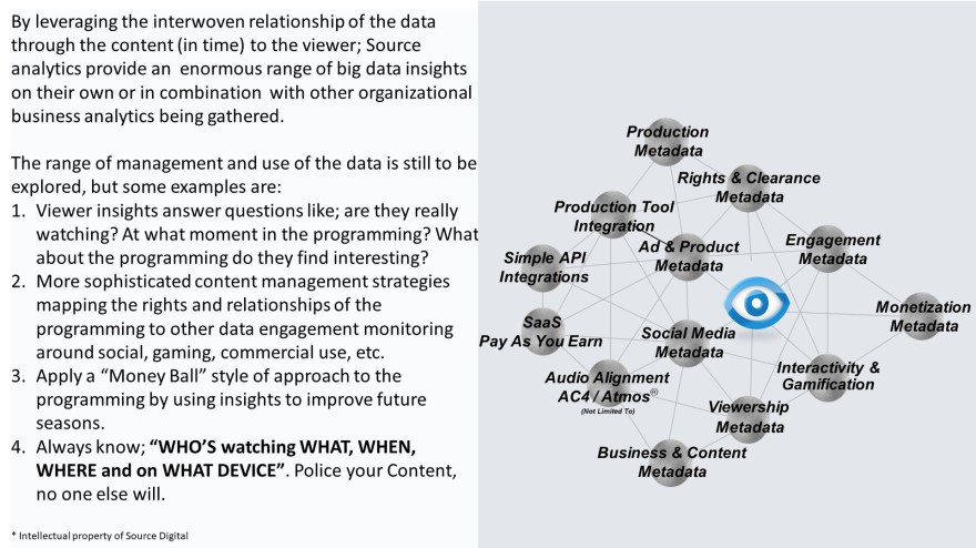 Pulse is the data analytics layer associated with the Source platform. Pulse measures every low level detail around each users type and level of engagement. Knowing that the TV is turned on is not good enough anymore. For true viewer behavior analysis, content owners and broadcasters can now leverage Smart Content strategies to understand exactly what their viewers are interested in around the content, or even better, WHAT THEY ARE DOING! Your "Smart"content can now answer the question, who is interested in me?!